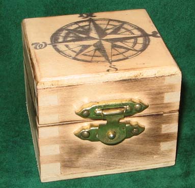 "Avast me hearties! You don't truly mean to be leavin' yer treasure lyin' about for just anyone to see or perhaps steal, do ya?" A good pirate keeps their treasure safe and hidden. I have just such a vessel befittin' Treasure such as yers. This beauty is made of Alder Wood from right here in the Pacific Northwest. It's bound and hinged with leather, has rope handles, and is glued and doweled together. The dimensions of this gem are: 6 1/4" x 5 1/4" x 5 1/2" , it weighs in at 1 1/2 pounds and has a rustic burned surface for that wonderful aged look.